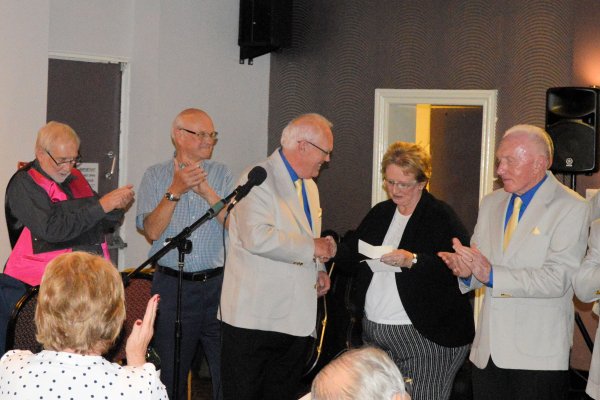 The concert was a major success, both in terms of entertainment value and fundraising. Following the final song, a presentation was made to Cancer Research UK, in the form of a cheque for £1,590.